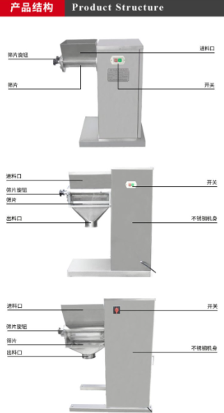 该设备主体由封闭轴承座与粉斗构成,旋转滚筒横置于粉斗下方,配备七根梯形刮刀及可调节松紧的筛网夹管。工作时,滚筒的正反旋转带动刮刀对物料施加挤压与剪切力,使其通过筛网形成颗粒。筛网松紧度直接影响颗粒质量,金属筛网可能产生污染,尼龙筛网则存在易损需频繁更换的问题。机械传动系统采用蜗轮减速箱驱动齿条往复运动,整体密封设计提升了部件寿命,电机架可通过螺杆调节皮带松紧以提高适应性。筛网更换时可通过转动花形手轮快速完成,操作简便。